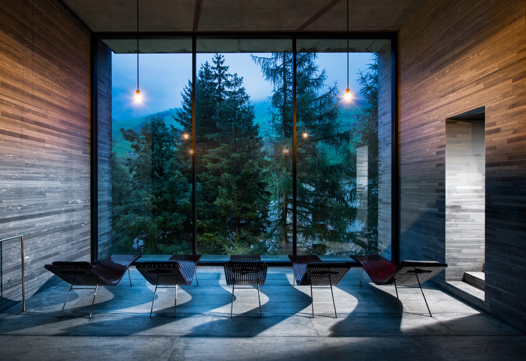 Stein und Wasser. Diese beiden Elemente prägen die Therme, das dazugehörige Hotel und ebenso die kleine 1’000-Seelen-Gemeinde Vals im Kanton Graubünden in der Schweiz. Architekturinteressierte aus der ganzen Welt reisen nach Vals, um sich das preisgekrönte Werk von Peter Zumthor anzuschauen. Das helle Eichenparkett Villapark Crema von Bauwerk verbindet die moderne Architektur gekonnt mit der archaischen Bergwelt. Dank der B-Protect®-Oberflächenversiegelung konnten auch die offen gestalteten Bäder bedenkenlos mit Parkett verlegt werden.