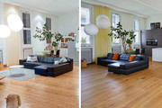 Wohnen, wo früher gebetet wurde. Familie Grüter im St. Galler Rheintal (Schweiz) hat sich den Traum eines individuellen Zuhauses bereits 2013 mit dem Kauf des sakralen Gebäudes erfüllt. Noch vor dem Einzug erneuerten sie die Fassade und die Fenster. Ein paar Jahre später starteten sie das nächste umfangreiche Renovierungsprojekt, bei dem neben der Küche auch der bestehende Holzboden im offenen Wohn- und Essbereich ersetzt wurde.