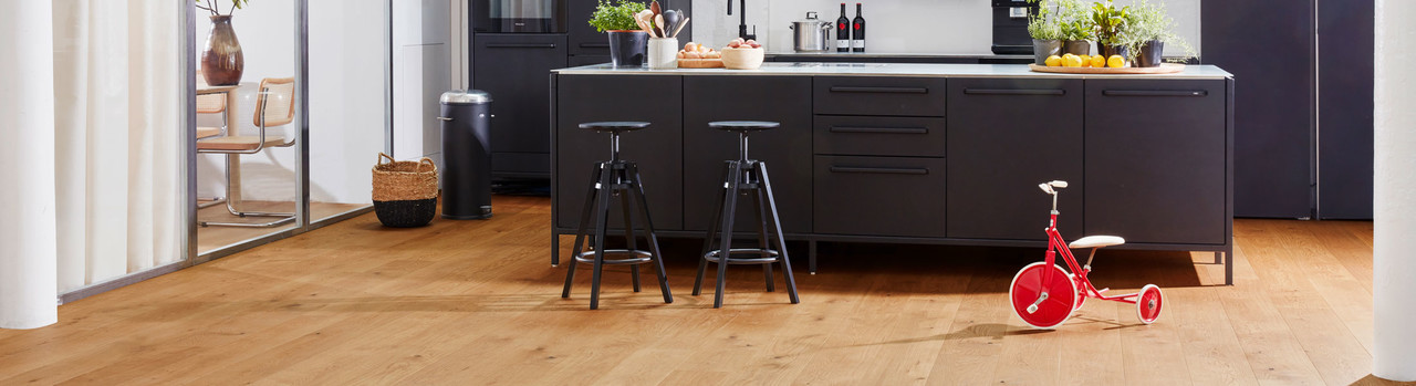 Die grosszügigen Casapark-Landhausdielen aus Eiche unterstreichen mit ihrer charaktervollen Vielfalt die individuelle Stimmung jedes Raums.