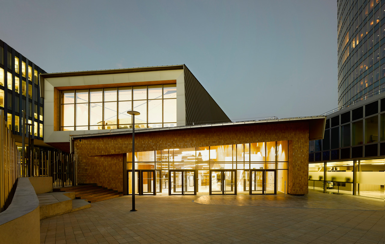 Le bois est le matériau par excellence dans la nouvelle salle de conférence de l'Organisation Mondiale de la Propriété Intellectuelle (WIPO, World Intellectual Property Organization) à Genève, conçue par le bureau d'architectes Behnisch. Avec ses porte-à-faux allant jusqu'à 30 m, cette salle de conférence fait entrer la construction bois dans une nouvelle dimension, et reflète le parti pris des maîtres d'ouvrage en faveur d'un bâtiment écologique à la construction exceptionnelle.