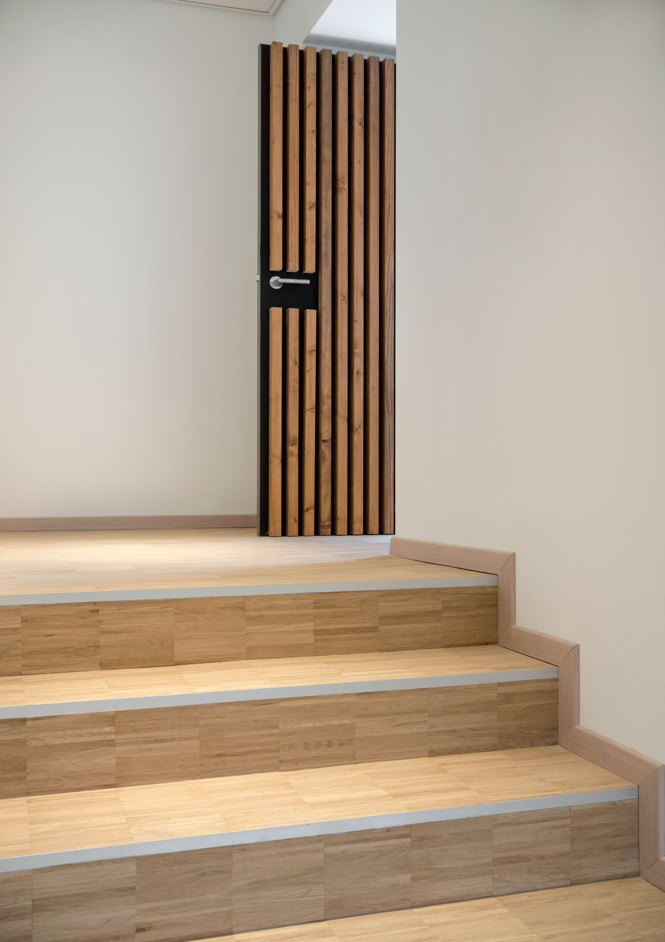 Aufwärts soll es für diejenigen, die in die Masseria di Cornaredo kommen, nicht nur auf den Treppenstufen mit Klötzli-Parkett von Bauwerk Parkett gehen. Einen Ort für Rückzug, alltägliche Dinge und schöne Begegnungen zu haben, soll auch dazu führen, dass es im Leben der Bedürftigen aufwärts geht.