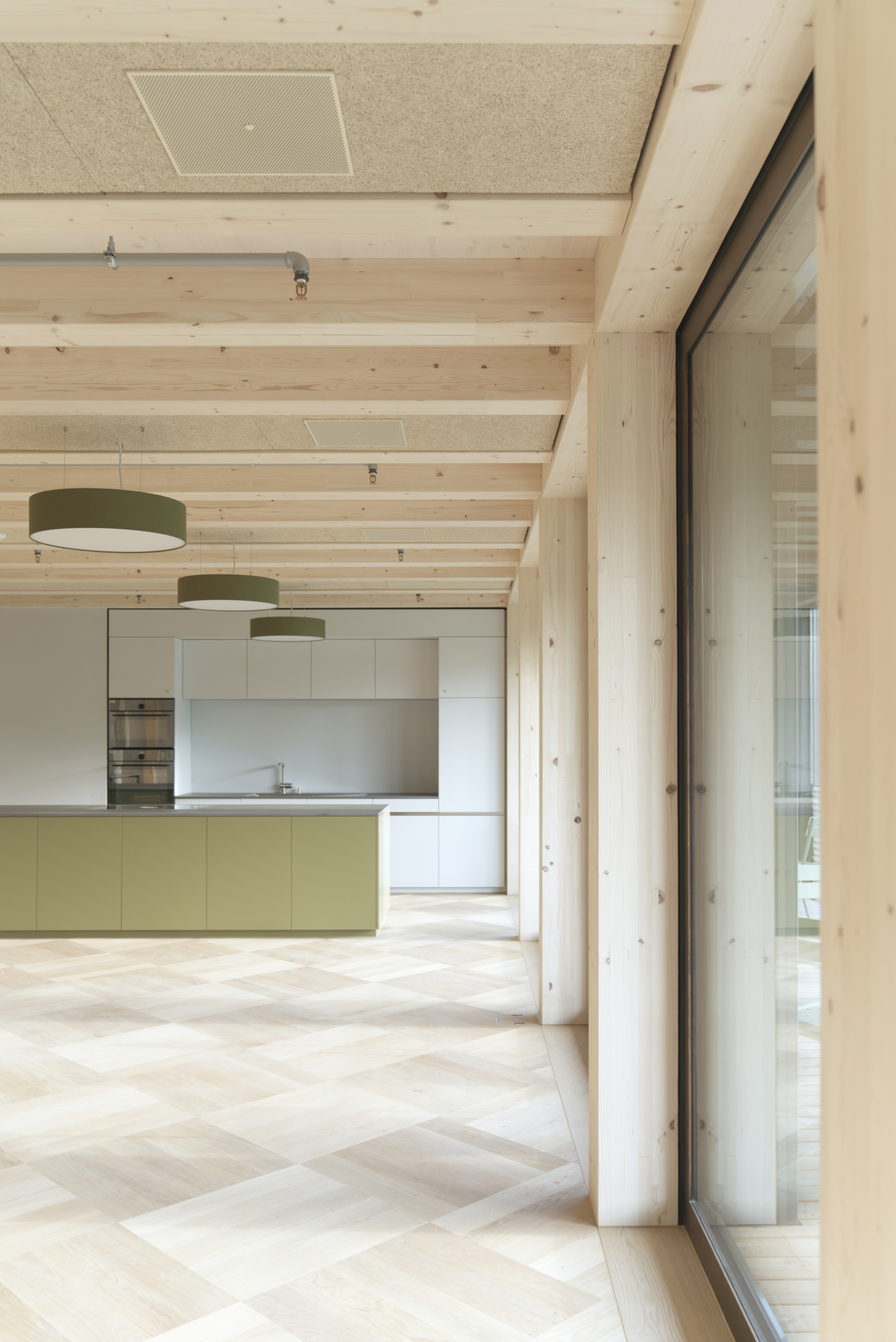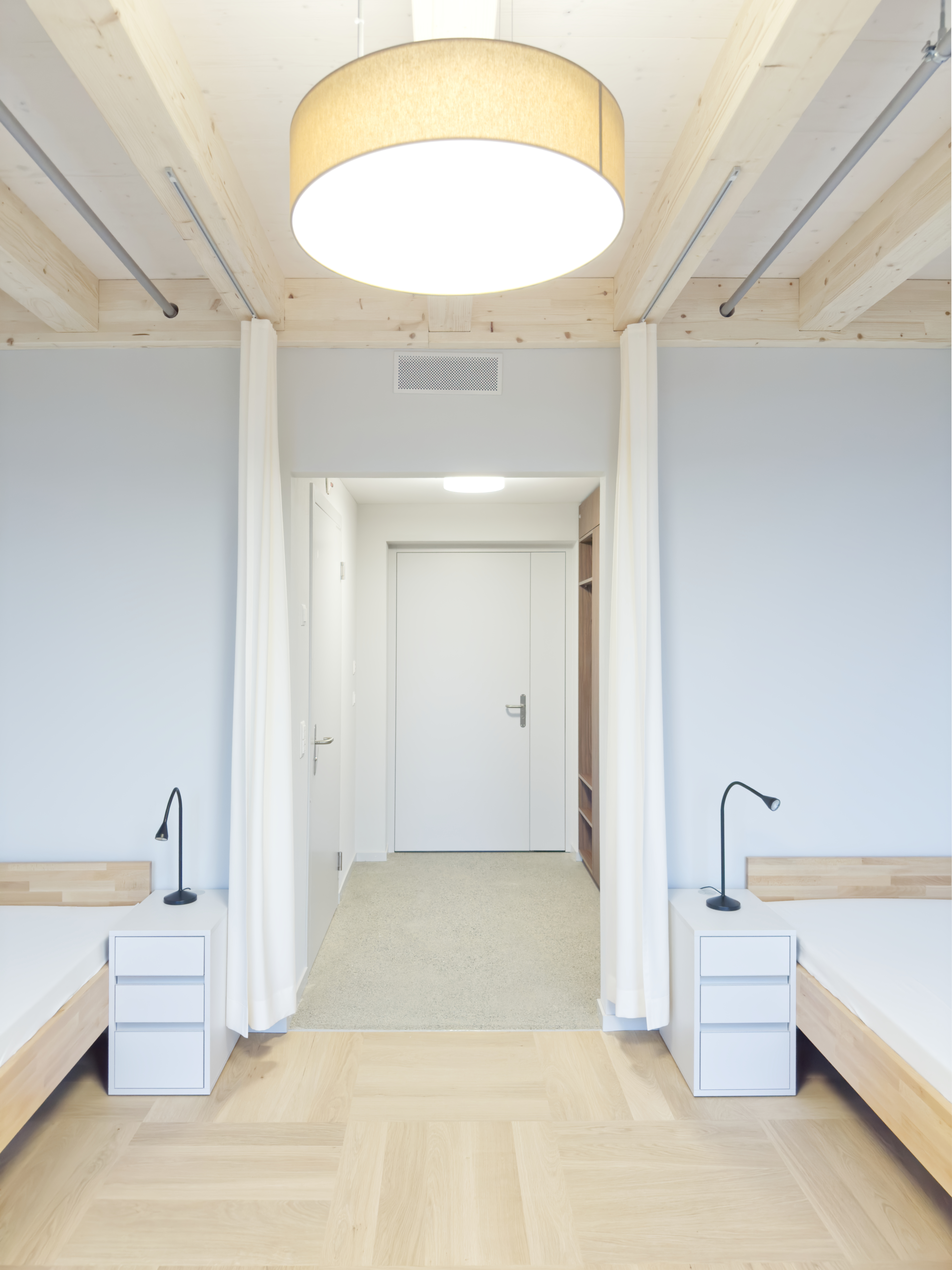 « Die Materialisierung erzeugt eine wohnliche Atmosphäre und distanziert das Projekt bewusst von der typischen Erscheinung von Spitalbauten. »