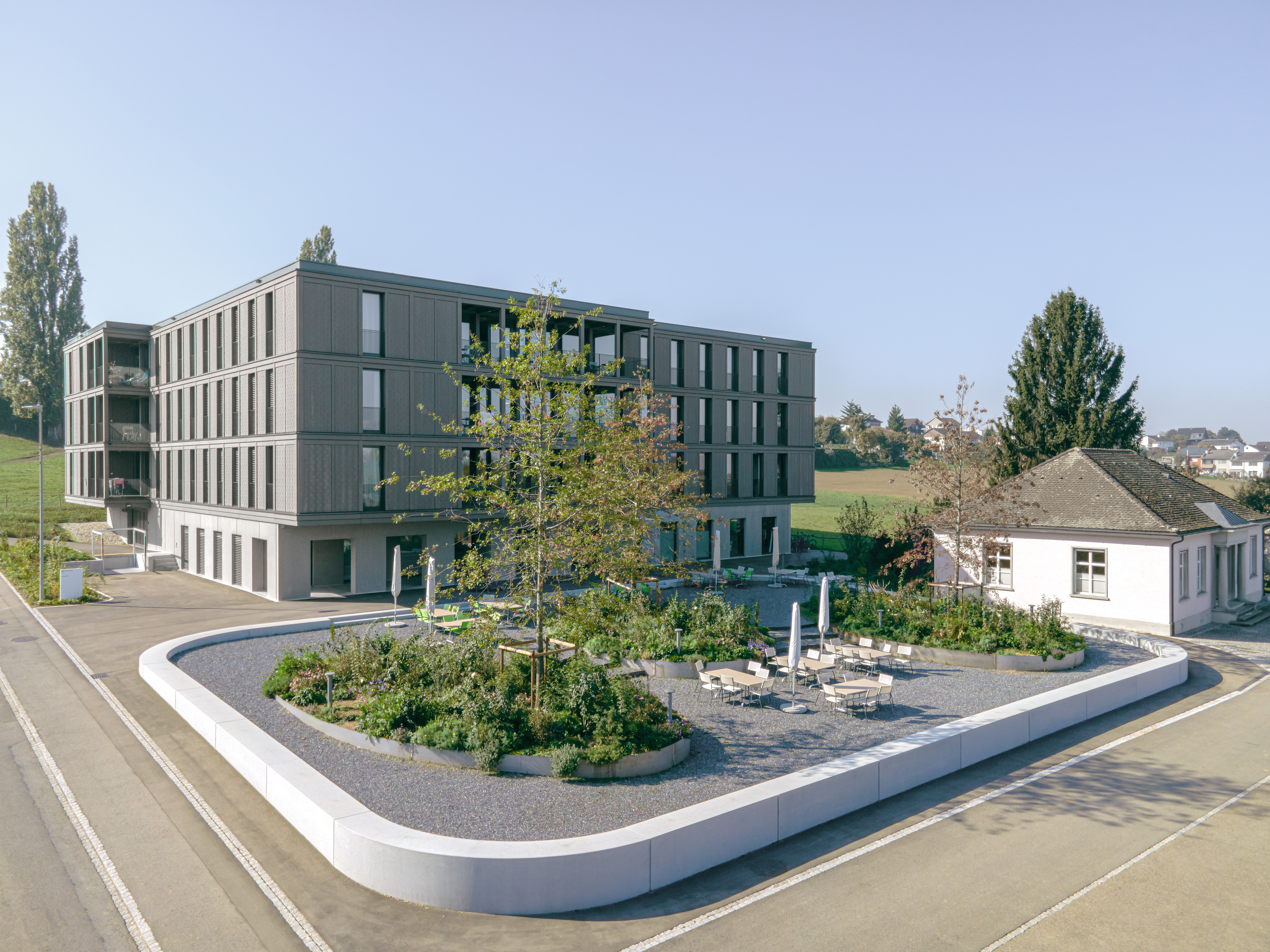 Mit dem Neubau Haus T auf dem Spitalareal Münsterlingen wurde ein Gebäude geschaffen, das Therapie sichtbar und spürbar neu denkt. Als Teil eines kleinen Ensembles mit der ehemaligen Pathologie und dem Gemeindehaus bildet es einen ruhigen, klar gegliederten Hof.