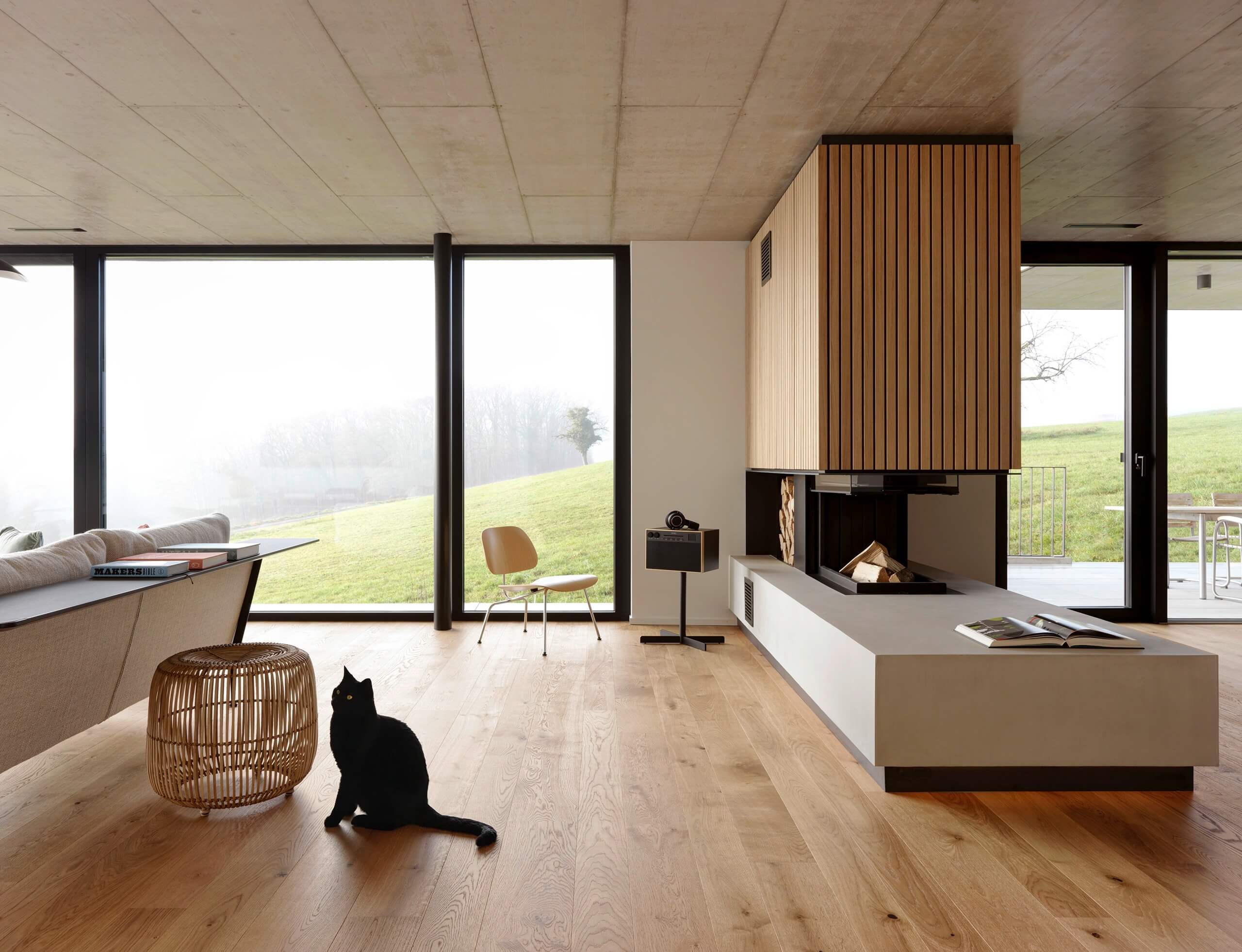 Carefully coordinated, colours, shapes and materials harmonise while still allowing the idyllic view of the surrounding landscape to become the true focal point.