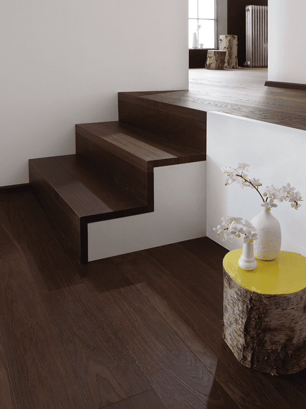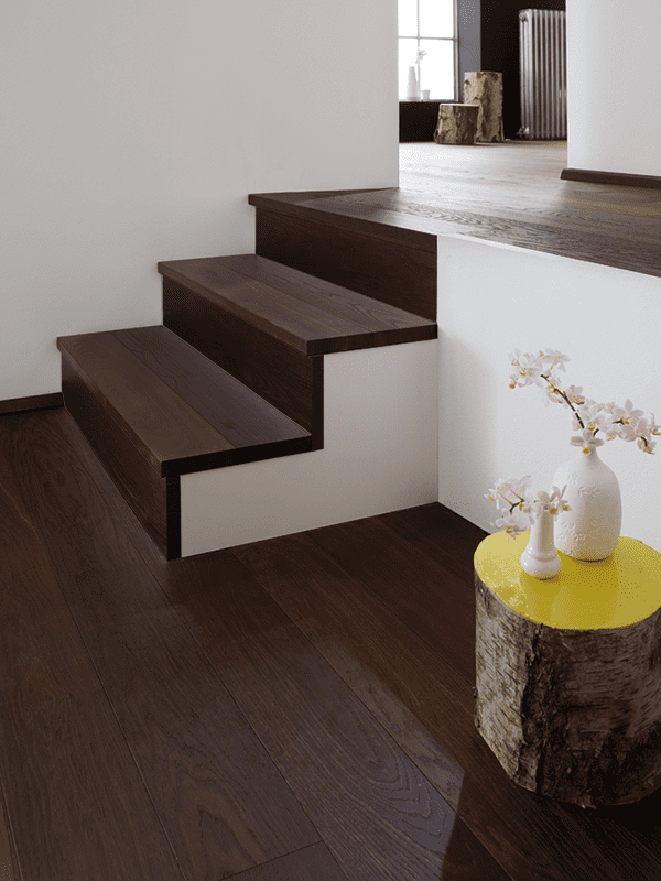 Le scale non sono più solo un elemento strutturale che permette di spostarsi tra piani diversi, ma rappresentano un importante elemento di design capace di definire l’intero ambiente. In questo senso, le soluzioni messe a punto da Bauwerk Parkett creano continuità tra il pavimento in parquet e la scala, che avranno entrambi lo stesso tipo di colore, finitura superficiale e grado di lucentezza. Realizzate in Svizzera nel nostro stabilimento centrale di St. Margrethen, sono sinonimo di massima precisione, qualità artigianale e varietà di design.